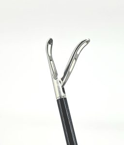 Лапароскопічний атравматичний окончатый шлунково-кишковий затискач компанії   “Лижа” з двома активними браншамі і тоненькою насічкою. Діаметр інструмента 5 мм, довжина 330 мм                         Характеристики: